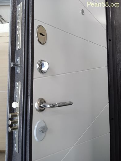 Заказная модель. производство: г. Казань завод "Бульдорс". Дверь с повышенной шумо-тепло изоляцией. Утеплитель: базальтовая плита высокой плотности 110кг/м3. Внешняя сторона двери: мдф накладка 10мм, цвет Бетон тёмный, рисунок 9S-130. Внутренняя сторона двери: мдф накладка 16мм, цвет Ларче Белый, рисунок 9S-130. Ручка в цвете хром.
